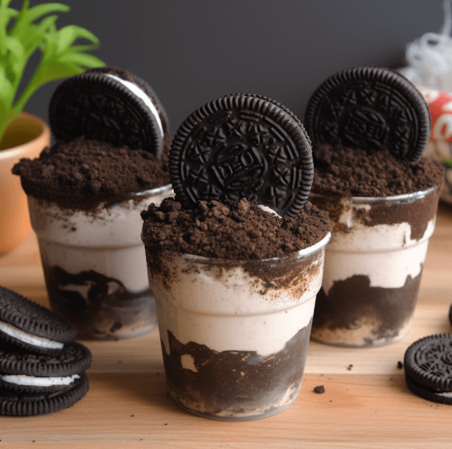 Crush Oreos to create “dirt” layers in a cup with chocolate pudding. Add gummy worms and crushed cookies on top for a fun, whimsical dessert that’s especially great for kids.