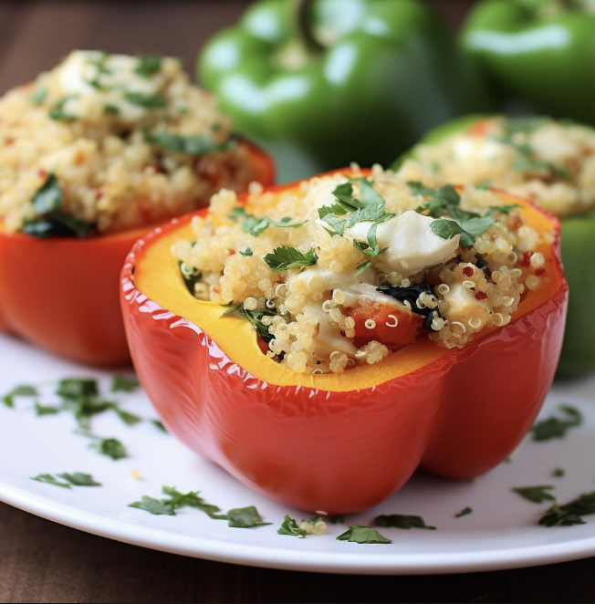 - Stuff the bell peppers with the quinoa mixture.