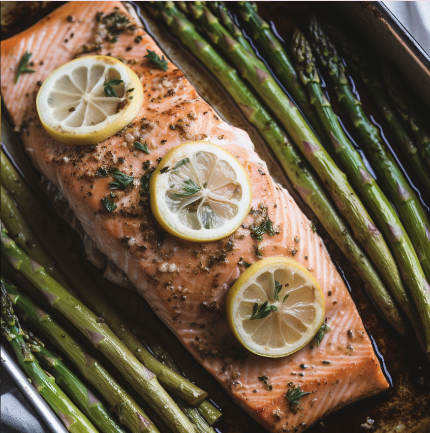 3. One-Pan Baked Salmon and Asparagus (Yummy and Filling!)