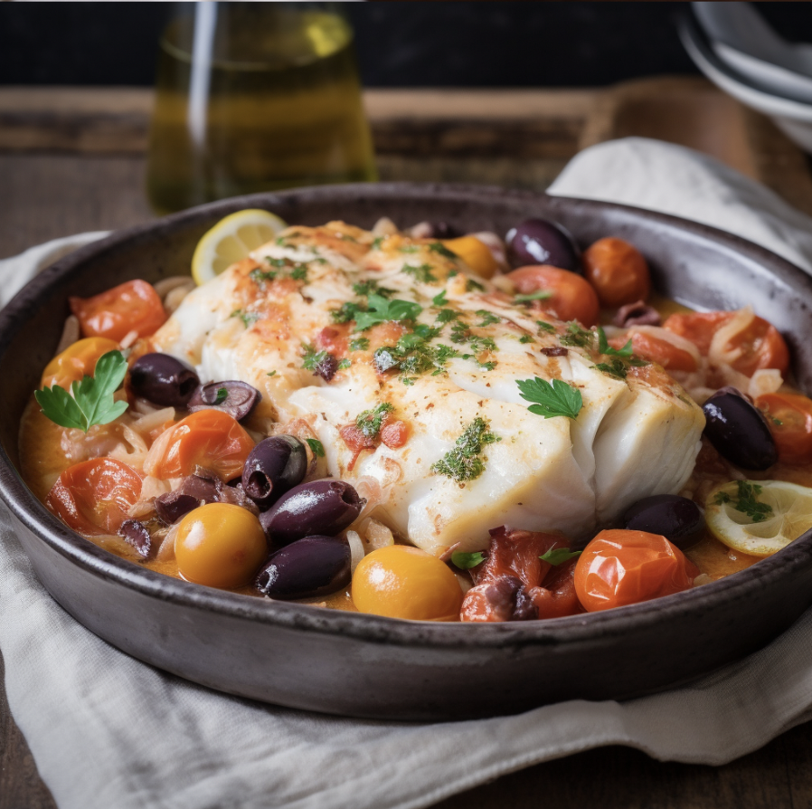 10. Baked Cod with Tomatoes and Olives