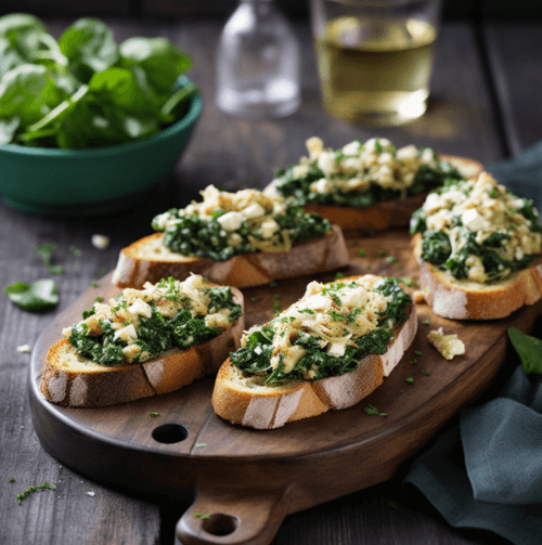 Inspired by the popular dip, this bruschetta features a creamy artichoke and spinach topping with a hint of garlic and Parmesan cheese.