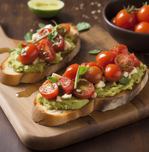 For a modern twist, try topping your bruschetta with creamy avocado and juicy cherry tomatoes. Add a sprinkle of sea salt and a drizzle of balsamic glaze for an extra burst of flavor.