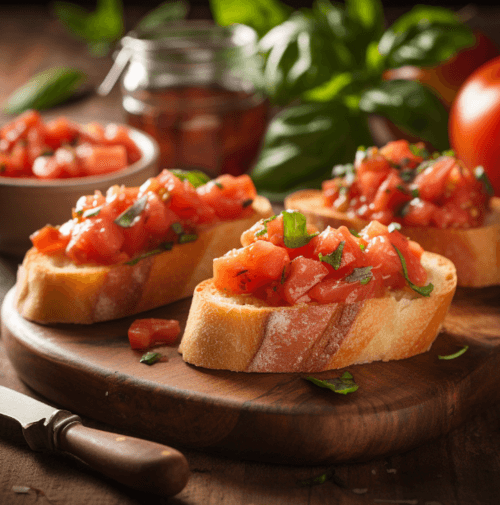 Start with the timeless classic: fresh tomatoes, garlic, basil, and olive oil on crispy toasted bread. This simple yet flavorful combination never fails to delight.