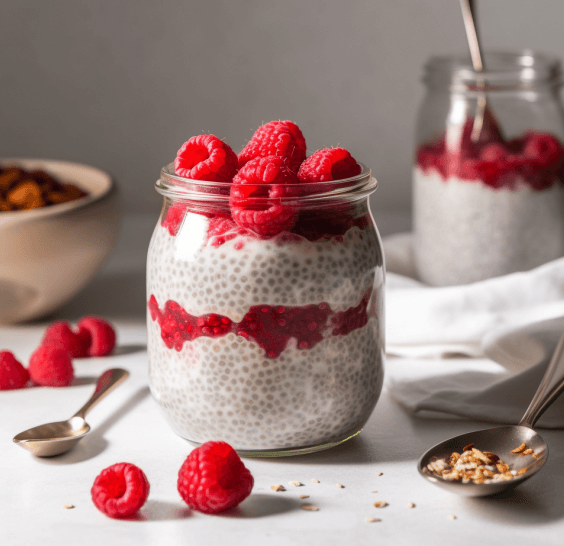 Raspberry Chia PuddingHigh fiber, protein, omega-3sLight but creamy, great for brunch