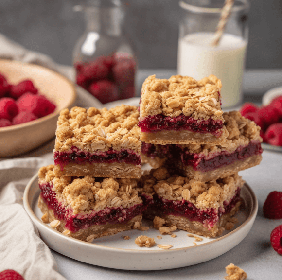 Raspberry Oat Crumble BarsOat & almond flour base, naturally sweetenedTastes like pie but healthier