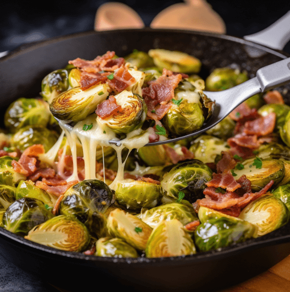 4. Cheesy Brussels Sprouts with Crispy Bacon