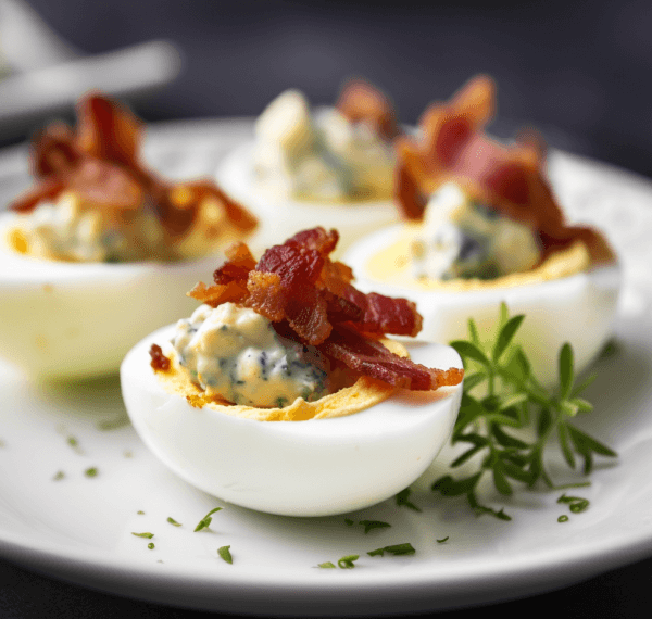 18. Keto Deviled Eggs with Blue Cheese & Bacon
