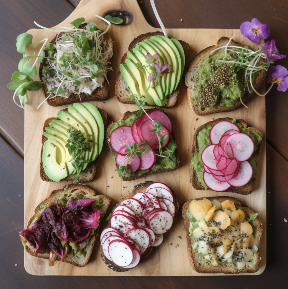 - Toppings like feta, radishes, chili flakes, and microgreens