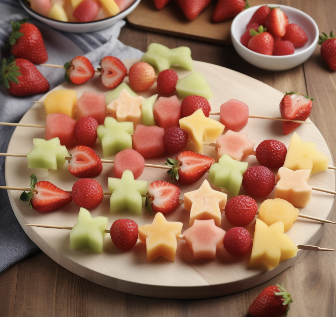 Thread fruits like watermelon, strawberries, and pineapple onto skewers. Bonus points for cutting the fruits into hearts.