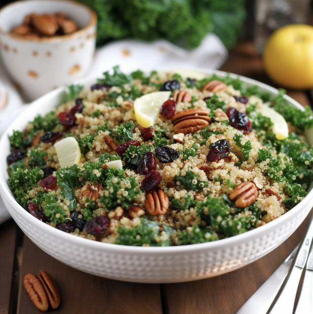 Mix kale, quinoa, cranberries, pecans, and a citrus vinaigrette for a fresh, healthy salad.
