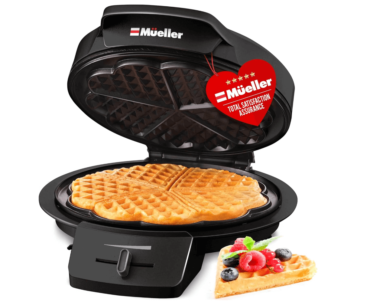 Grab a heart-shaped waffle maker (yes, they exist, and yes, you need one). Top the waffles with whipped cream, berries, and a drizzle of maple syrup.