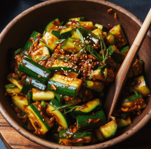 1. Sauté sliced zucchini with garlic, soy sauce, sesame oil, and a pinch of gochugaru (Korean chili flakes).