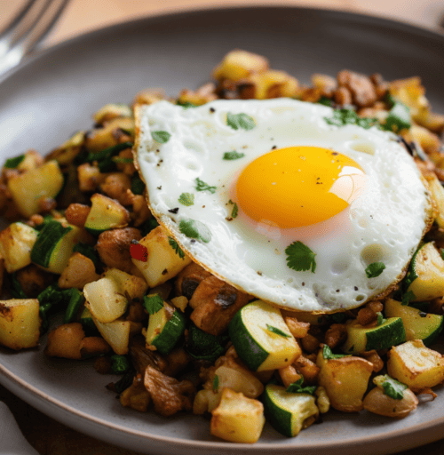 17Zucchini Breakfast HashHearty breakfastSautéedFilling, veggie-packed, egg-topped