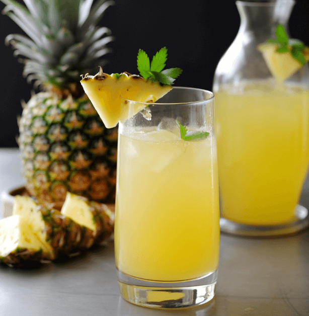 - Ingredients: Pineapple juice, grated ginger, honey, and soda water.