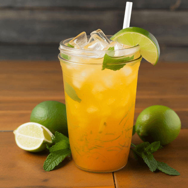 - Ingredients: Mango puree, lime juice, sparkling water.