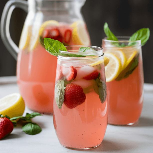 - Ingredients: Strawberries, basil, lemon juice, honey, and water.