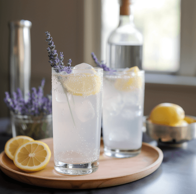 - Ingredients: Lemon juice, lavender syrup, sparkling water.
