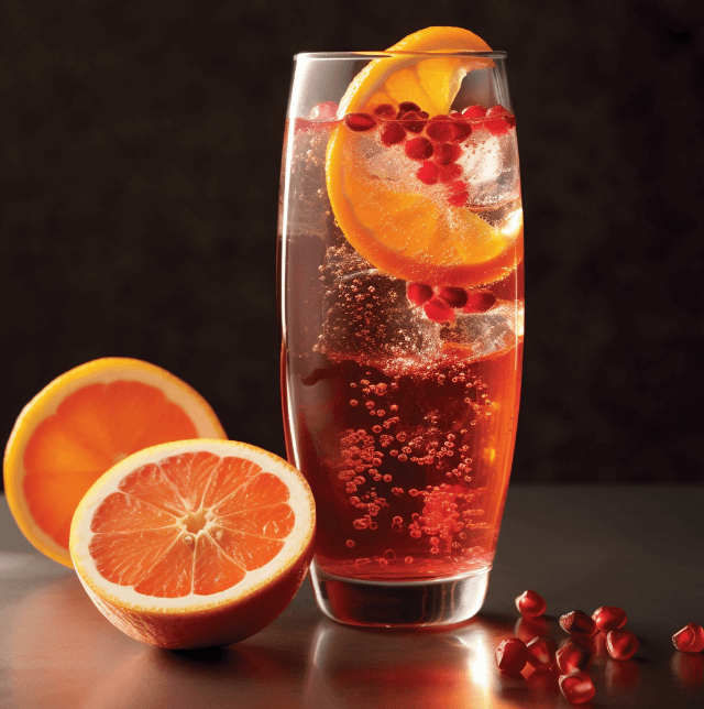 - Ingredients: Pomegranate juice, sparkling water, orange slices.