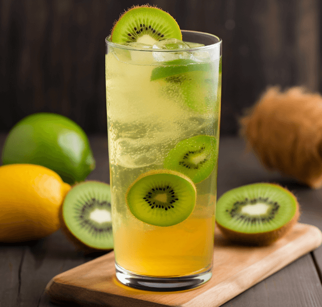 - Ingredients: Kiwi, lime juice, honey, and soda water.