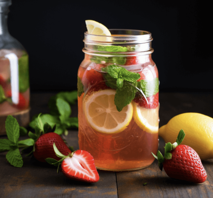 - Ingredients: Strawberries, mint, lemon juice, honey, and water.