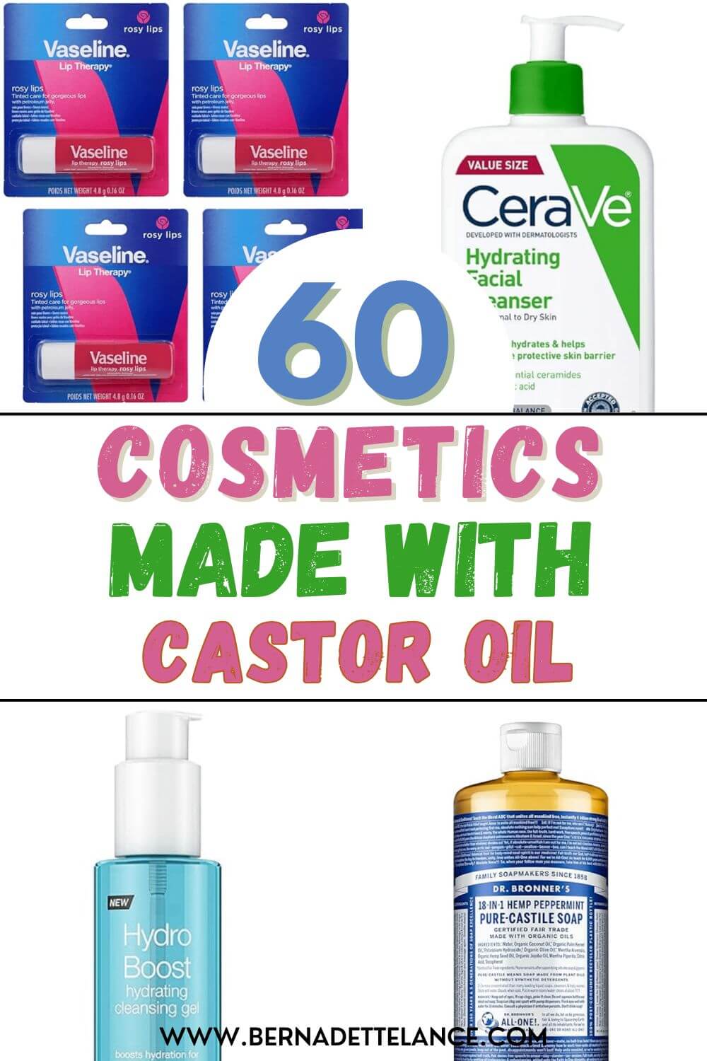 Whether you’re exploring castor oil uses for glowing skin, longer hair, or overall health, here’s your ultimate guide to 60 cosmetics and beauty solutions that include this miracle oil.