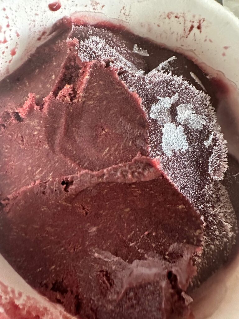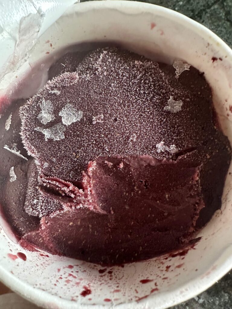 So much that sometimes I just grab it straight from the freezer, scoop it into a bowl, and eat it as is: no toppings, no bananas, no granola, nothing. Just pure, deep purple goodness.