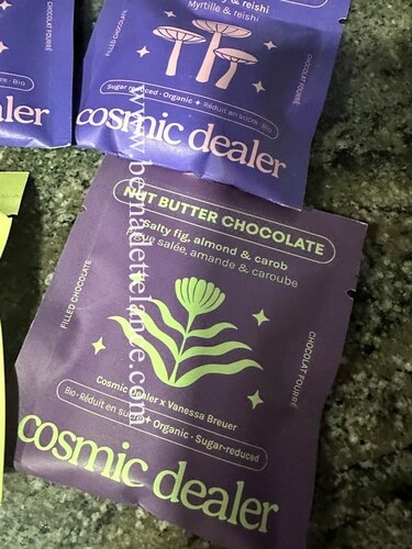 These Cosmic Dealer nut butter chocolates are a dream. They look beautiful on a table, feel special in the hand, and taste way more interesting than anything wrapped in shiny foil.