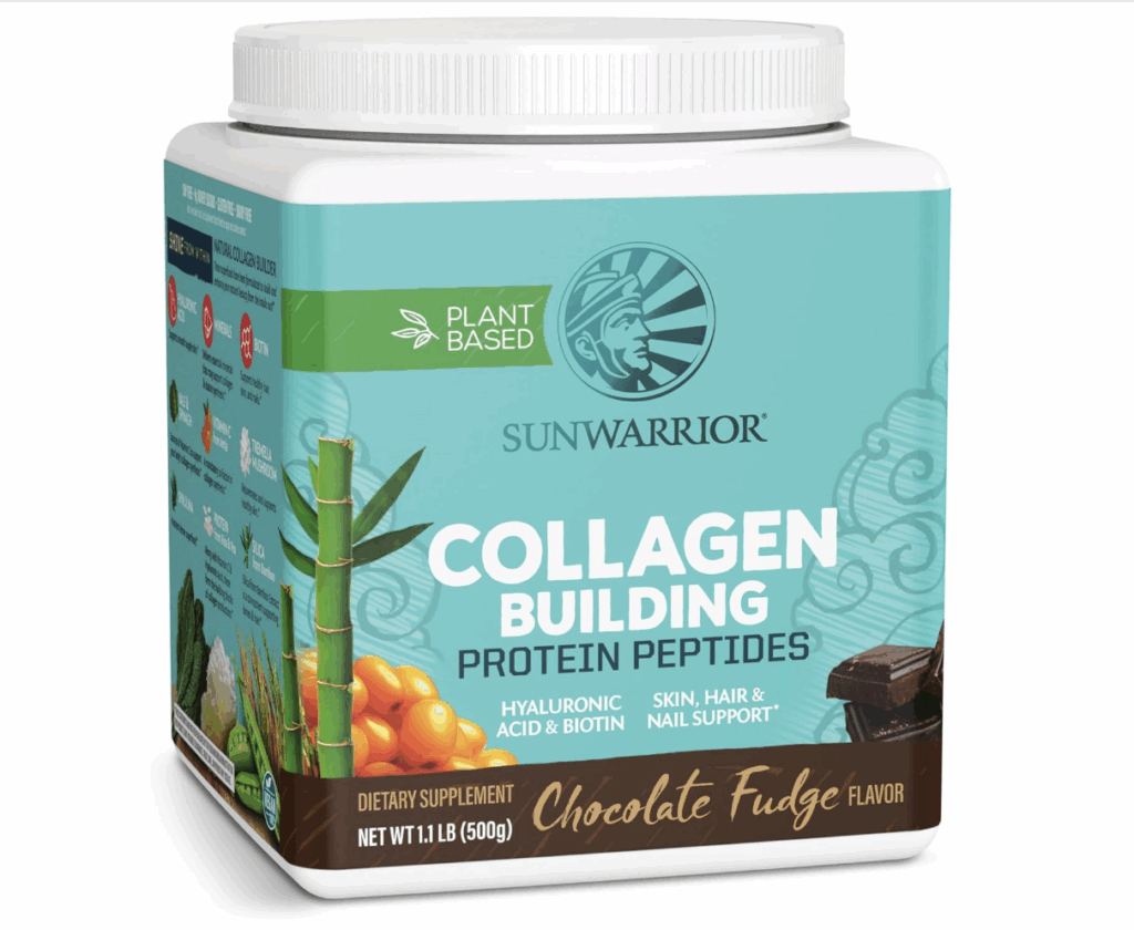 I used to be all about that classic collagen, you know, the kind made from cow or fish. But lately, I’ve made a full switch to a vegan collagen alternative, specifically the Sunwarrior Collagen Building Protein Peptides in the Chocolate Fudge flavor.