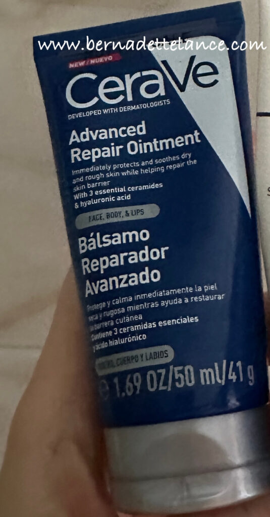- I apply a thin layer of CeraVe Ointment or Aquaphor.