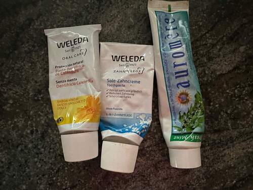 | Weleda Sole-Zahncreme | Weleda | Sea salt, Ratanhia root, Myrrh | Super refreshing, gritty texture, fights plaque |
