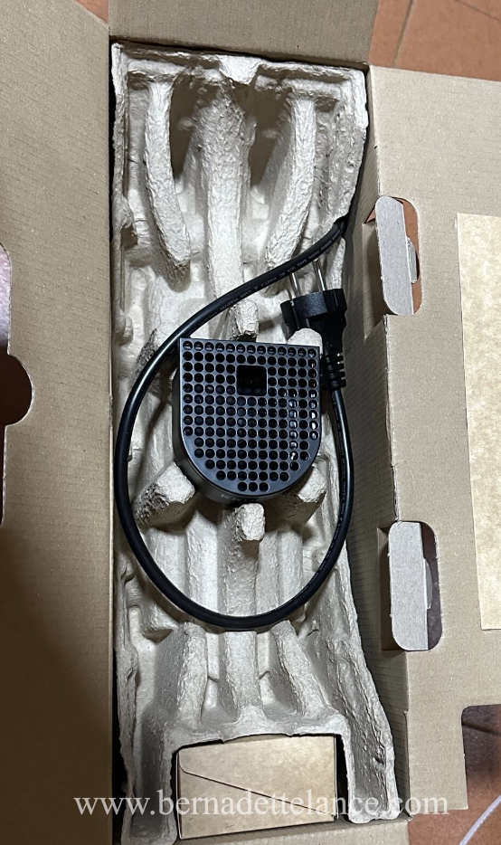 Inside the box, you get the machine, the power cord, a little manual, and a welcome pack with different capsules. That welcome pack was a lifesaver because I didn’t have to run to the store right away to buy pods.