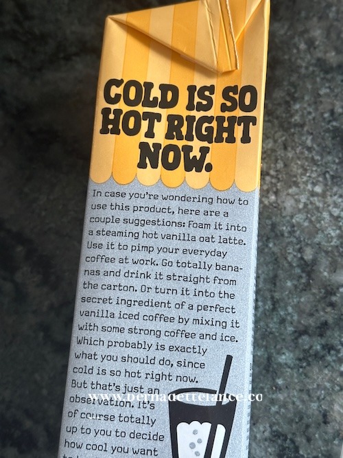 It comes in a pastel blue carton with quirky writing that screams “we don’t take ourselves too seriously.”