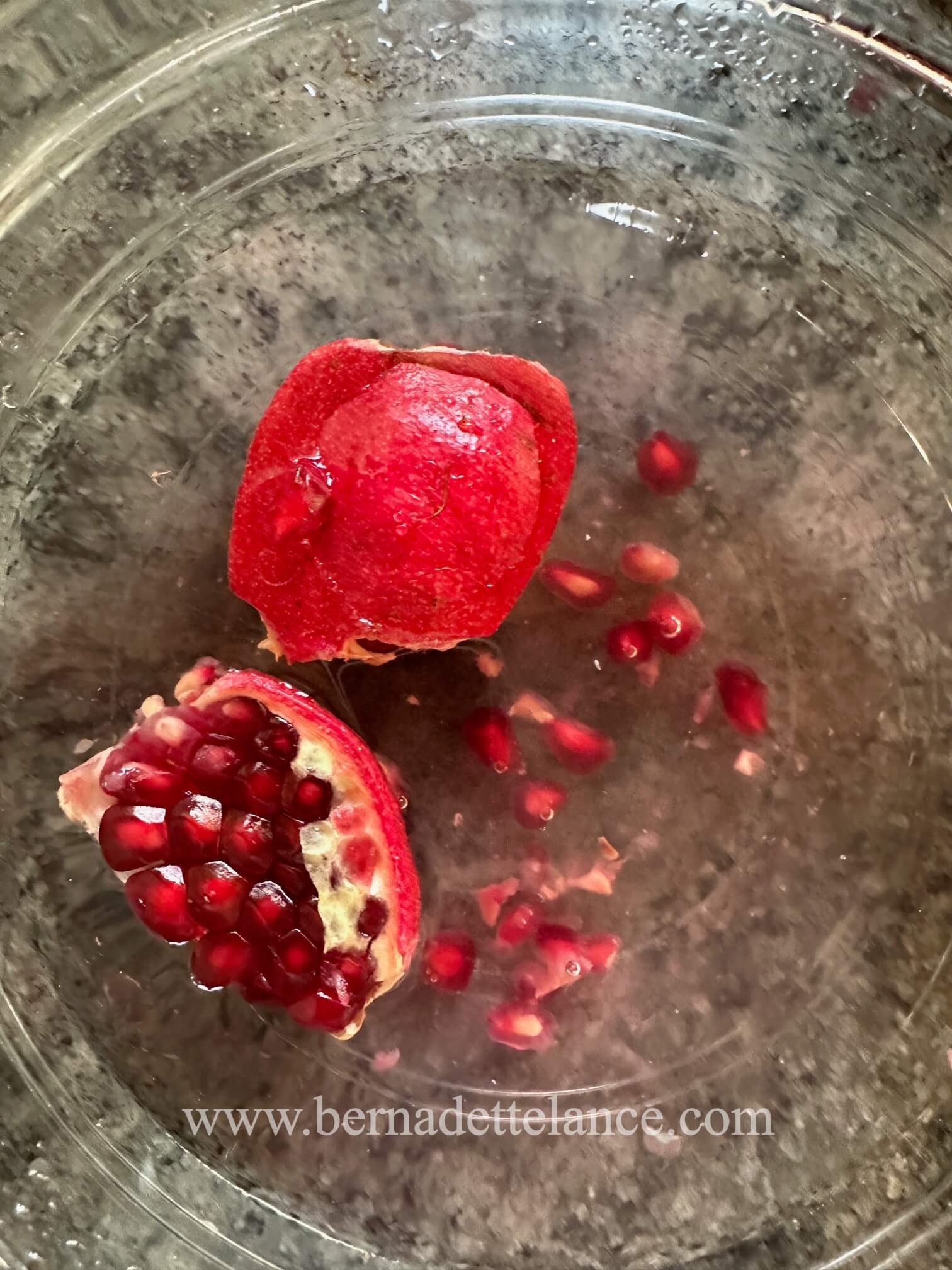 Strain and enjoy your pomegranate seeds.