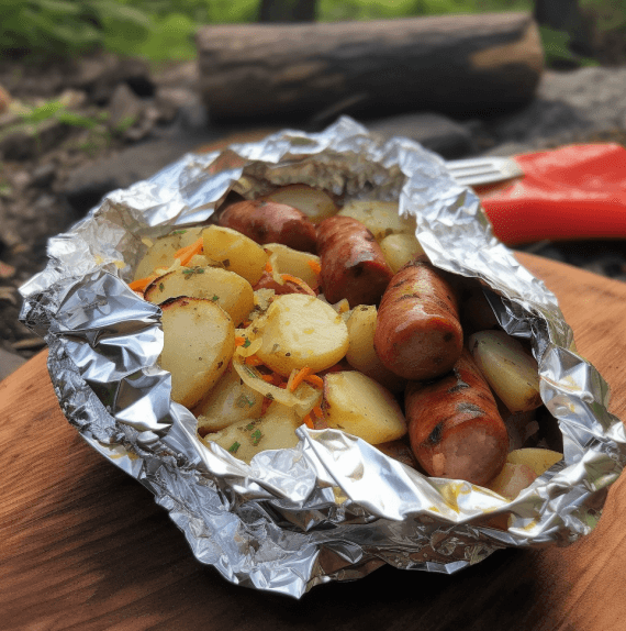 - Wrap tightly in foil and place over campfire coals for 20-25 minutes, flipping once.