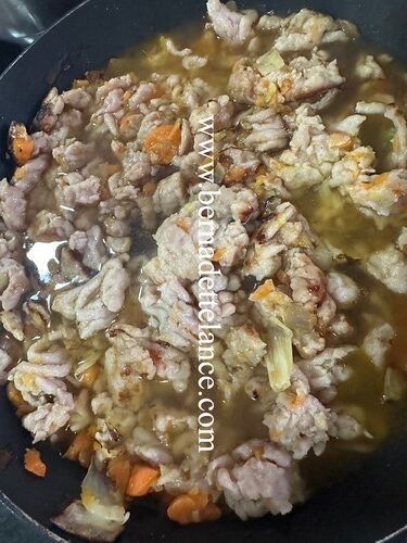 Every vegetable should be cut into tiny pieces, roughly the same size as the meat crumbles.