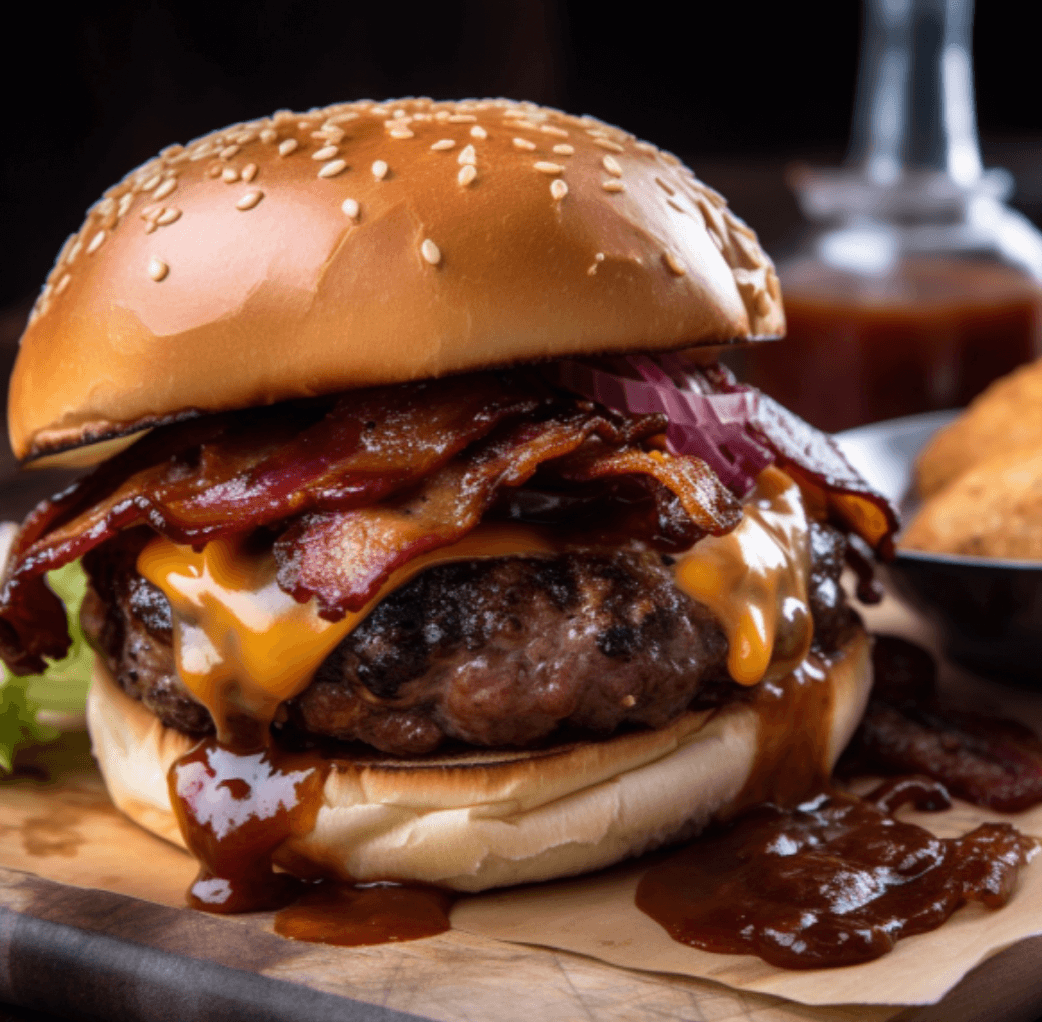 - Assemble: Spread BBQ sauce on the bun, add the burger, crispy bacon, and any toppings (lettuce, tomato, onions).